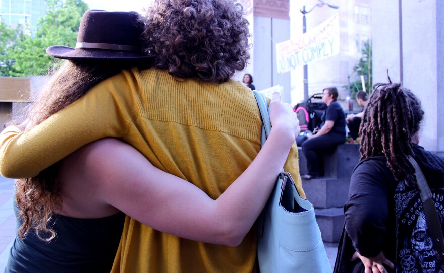 Kuffel started talking about what happened in the last year and even more so this past week. Gerri DeSouza, her partner of six months, was with her at the rally.