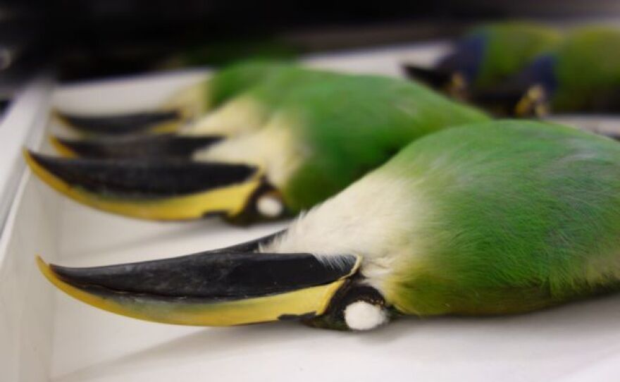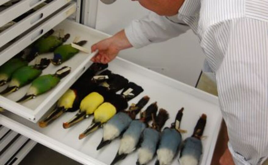 [asset-images[{"caption": "Drawer full of humming birds.", "fid": "3253", "style": "card_280", "uri": "public://201304/DSC03418.jpg", "attribution": "Credit KUOW Photo/Sarah Waller"}]]Active collecting has been incredibly valuable to the fields of science and conservation, Faucett says. He points to the way National Parks have been established as a result of birds discovered during active collecting expeditions.