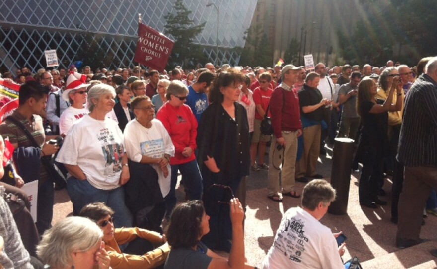 At the King County Recorder's Office, a few couples lined up in the early afternoon to sign up for marriage licenses. The historic ruling inspired Lisa Gilmore and Larysa Slobodian to fill out the paperwork. They woke up at 3:00 a.m. out of anxiety, fearing the high court would allow DOMA to stand. Instead, the opposite happened and Gilmore said they were relieved. “We’ve been anxiously awaiting the ruling for so long, that it’s a mixed bag of shock and excitement. It’s hard to concentrate on very much else today, frankly,” she said.
