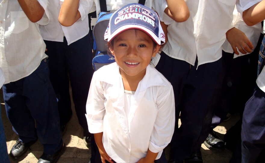 [asset-images[{"caption": "After the New England Patriots lost Super Bowl XLII, World Vision distributed the unusable shirts to schools in Nicaragua. ", "fid": "8605", "style": "placed_wide", "uri": "public://201401/World_Vision_1_0.JPG", "attribution": "Credit Courtesy of World Vision"}]]